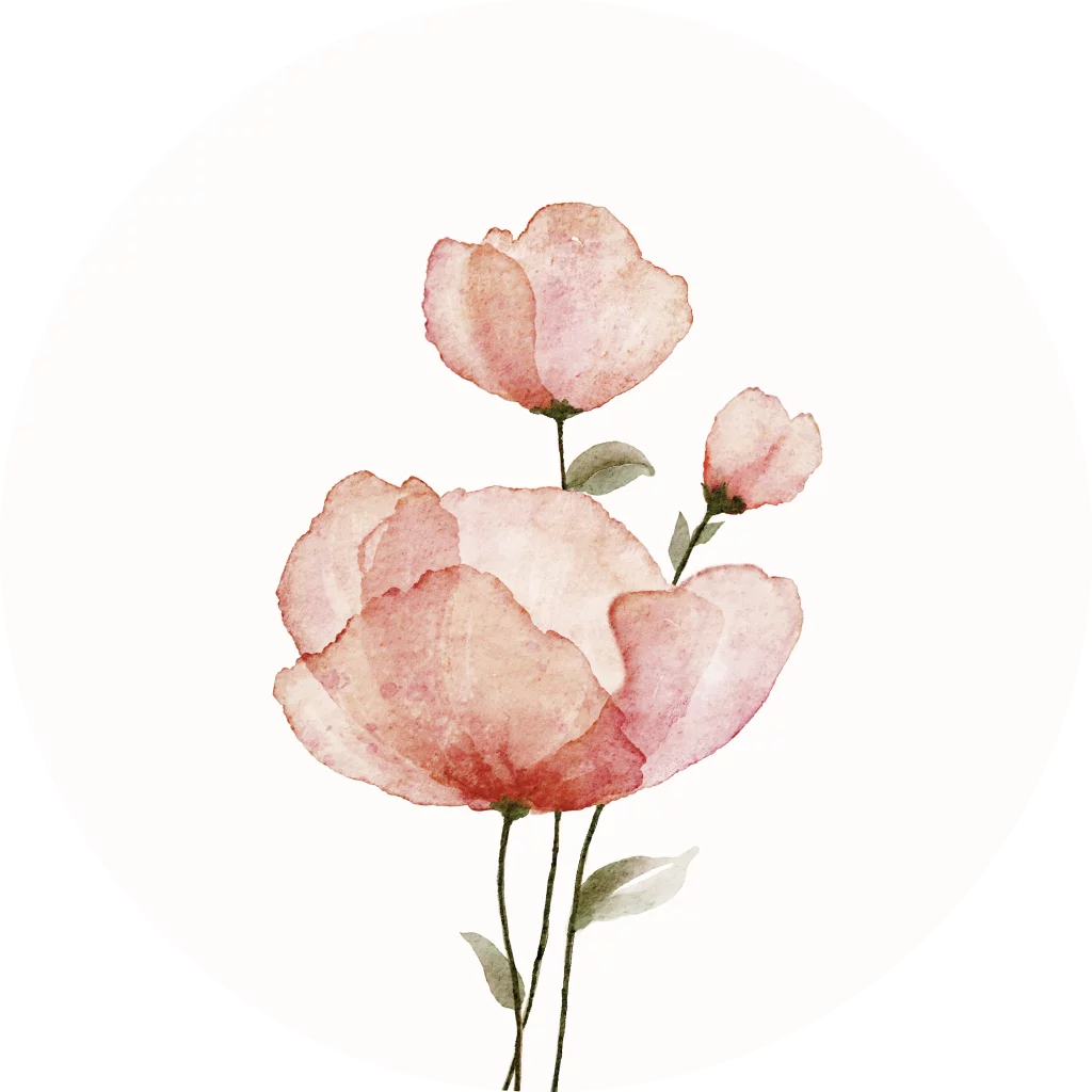 Sluitsticker met handgetekend roze aquarel bloemen, perfect voor het stijlvol verzegelen van enveloppen. Subtiel en elegant ontwerp met zachte kleuren, ideaal als aanvulling op geboortekaartjes of andere feestelijke post. Een charmant detail dat warmte en verfijning toevoegt aan elke verzending.