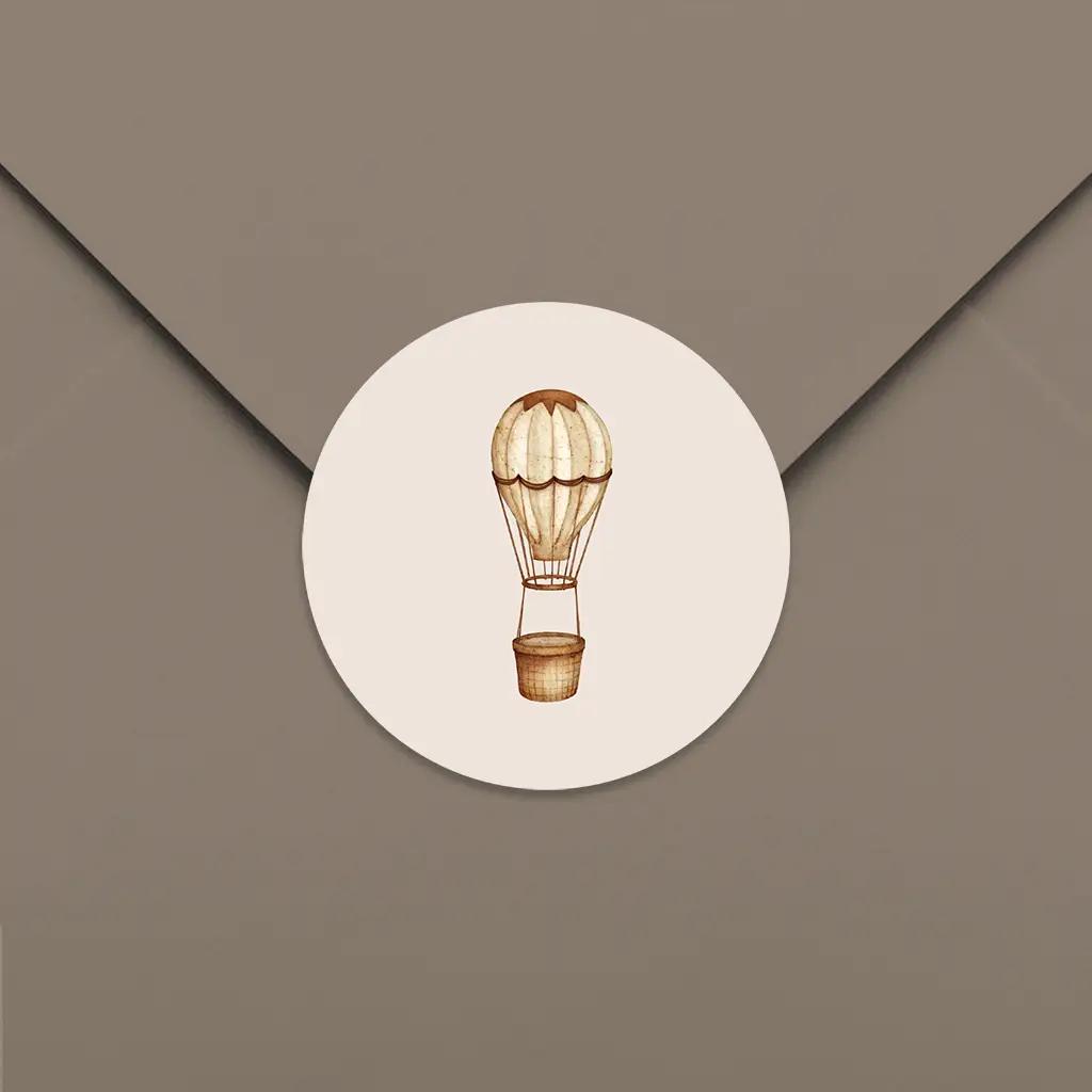 Deze sluitsticker maakt jullie geboorteaankondiging helemaal af. Op de sticker staat een luchtballon met prachtige aarde tinten. De sticker is te personaliseren in onze online editor. De sluitstickers hebben een diameter van 35 mm en worden geleverd op vellen van 25 stuks.