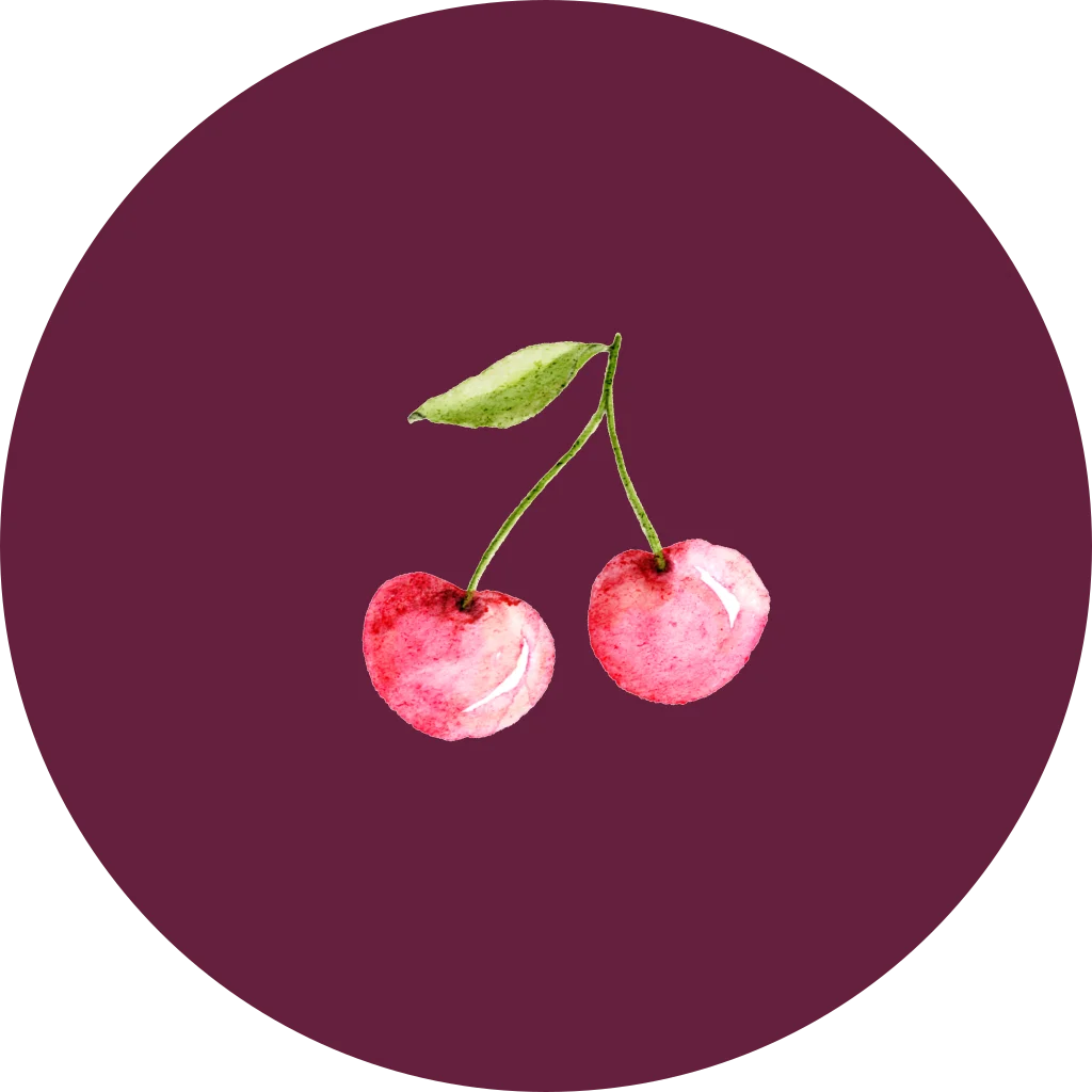 Een lieve sluitsticker om de geboorteaankondiging compleet te maken. De sticker heeft een paarse achtergrond met daarop een watercolour illustratie van kersen. Pas het ontwerp naar wens aan in onze online editor.
