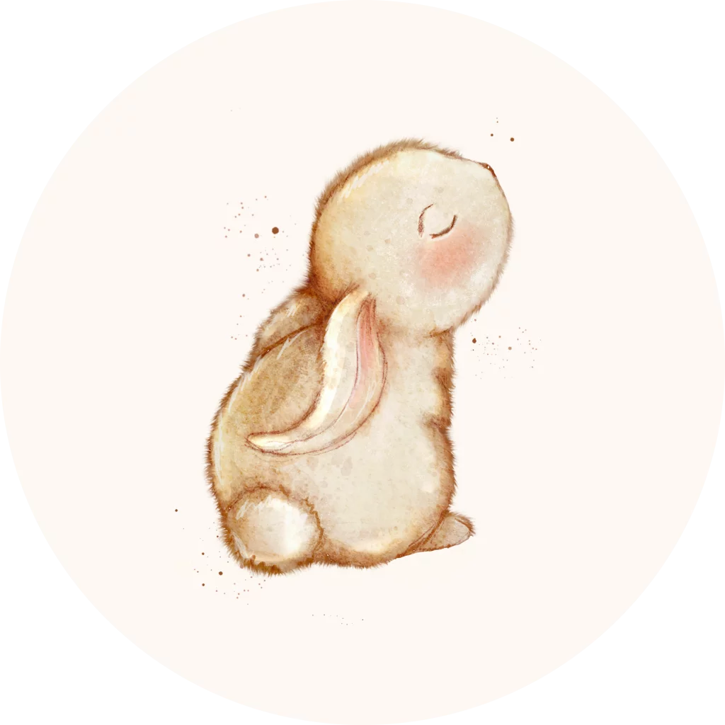 Een witte sluitsticker met schattige illustratie van een konijntje. De sticker past perfect bij het geboortekaartje van designer Little Spark Art.