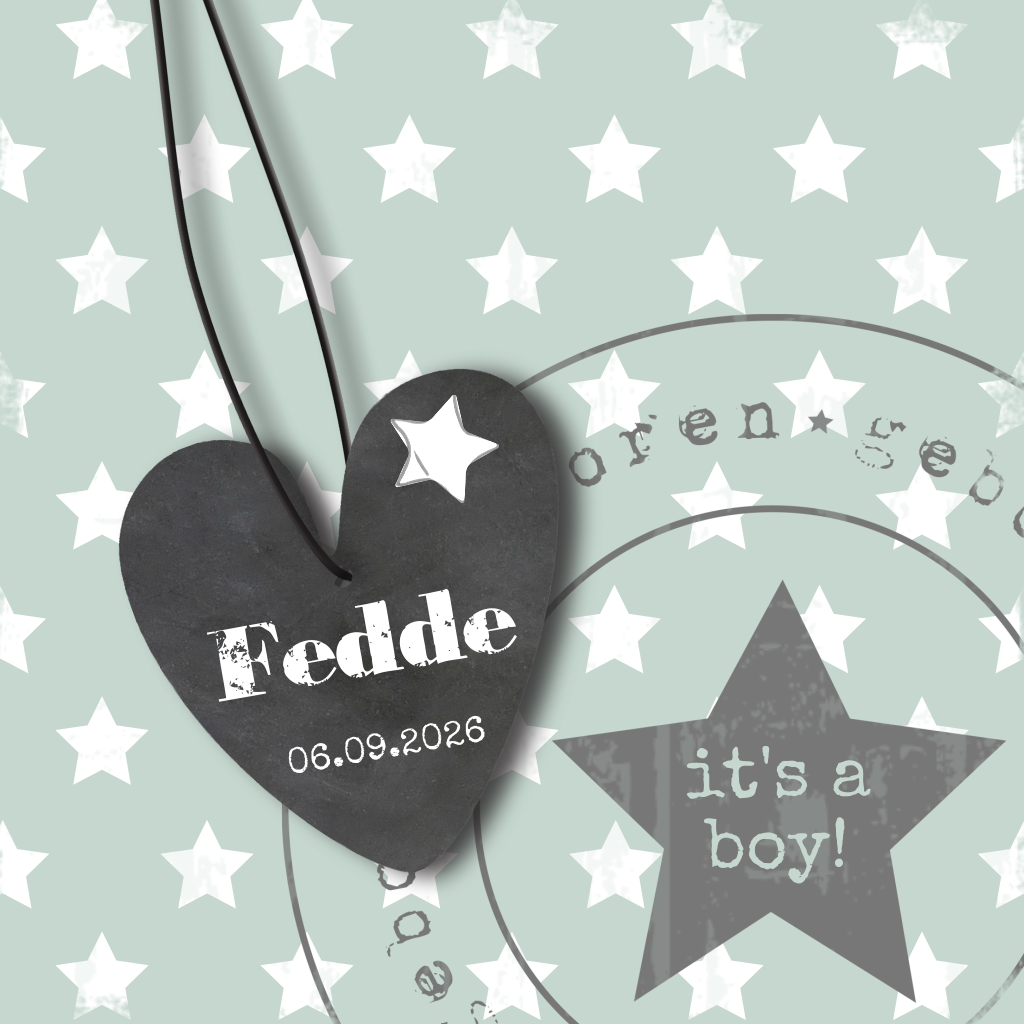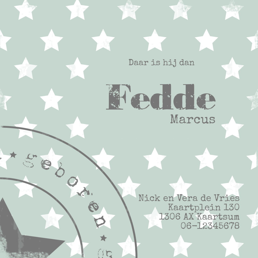 Hip sterren geboortekaartje voor een jongen