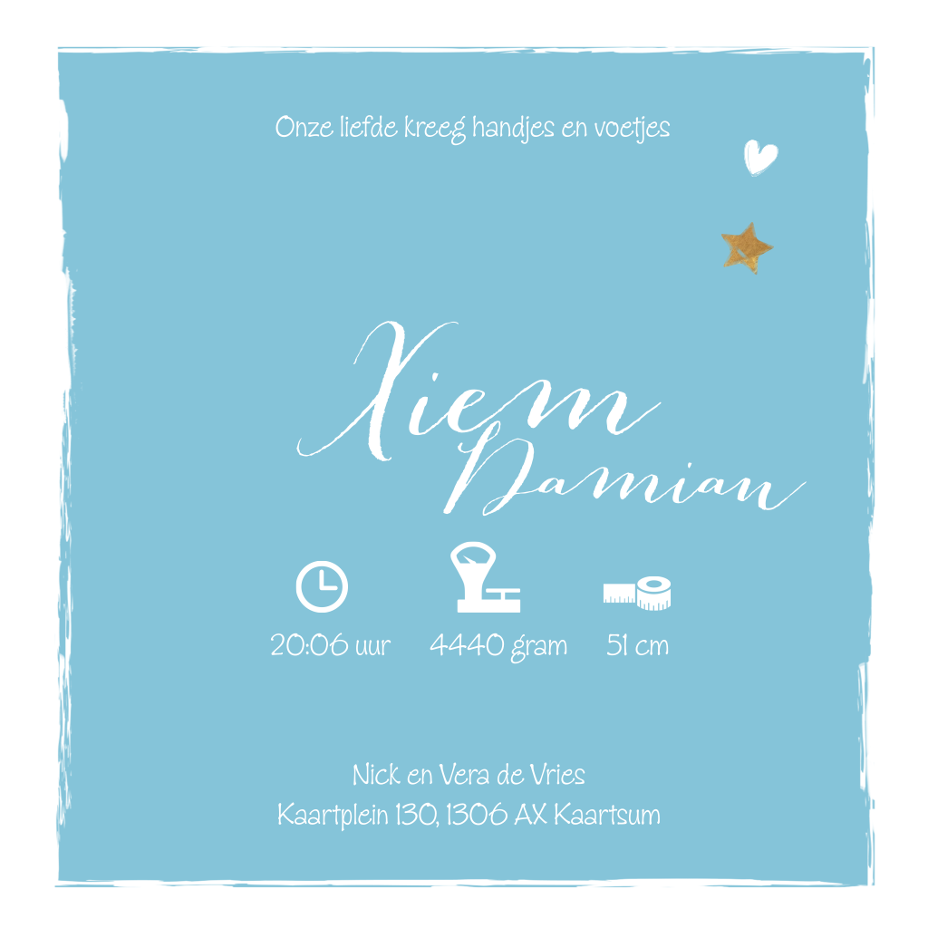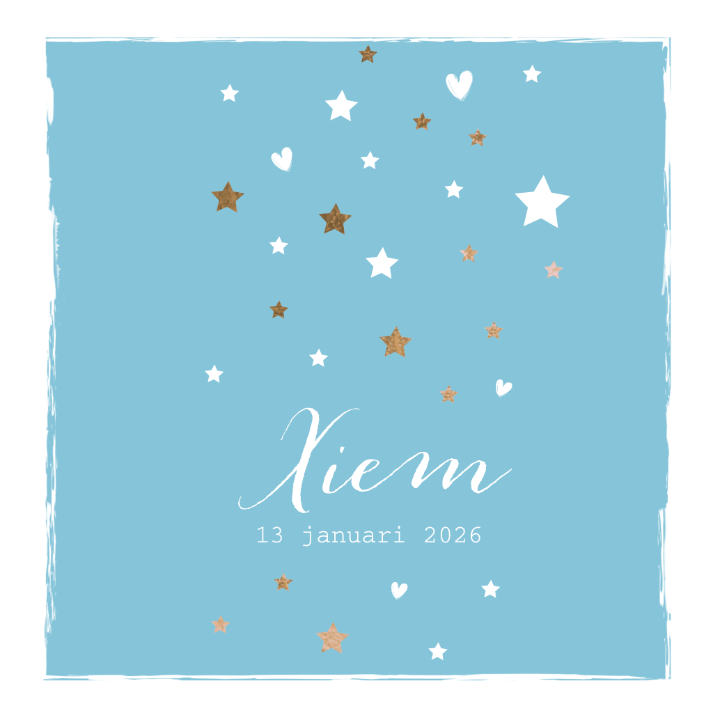 Lief geboortekaartje met sterren en hartje voor een jongen
