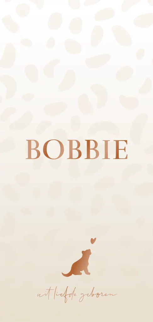 Een stijlvol geboortekaartje met beige panterprint. De naam en het panter silhouetje zijn gedrukt in hoogglans. Pas het kaartje naar wens aan in onze online editor. Bestel een proefdruk om het kaartje in het echt te bewonderen.