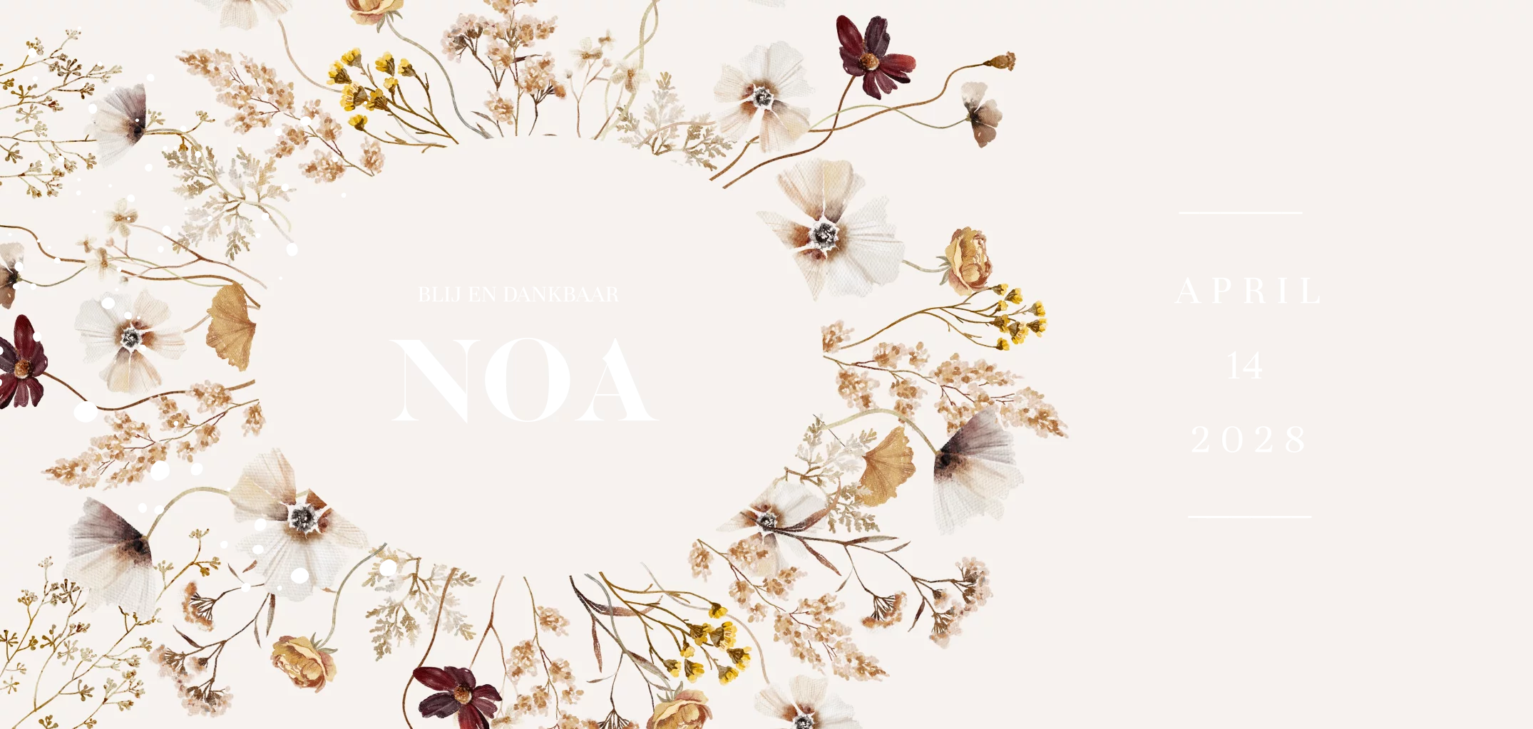 Een stijlvol geboortekaartje voor een meisje. Het kaartje heeft een liggend panorama formaat met goudfolie details. Aan de linkerkant zie je een prachtige bloemenkrans. Pas het ontwerp naar wens aan onze online editor.