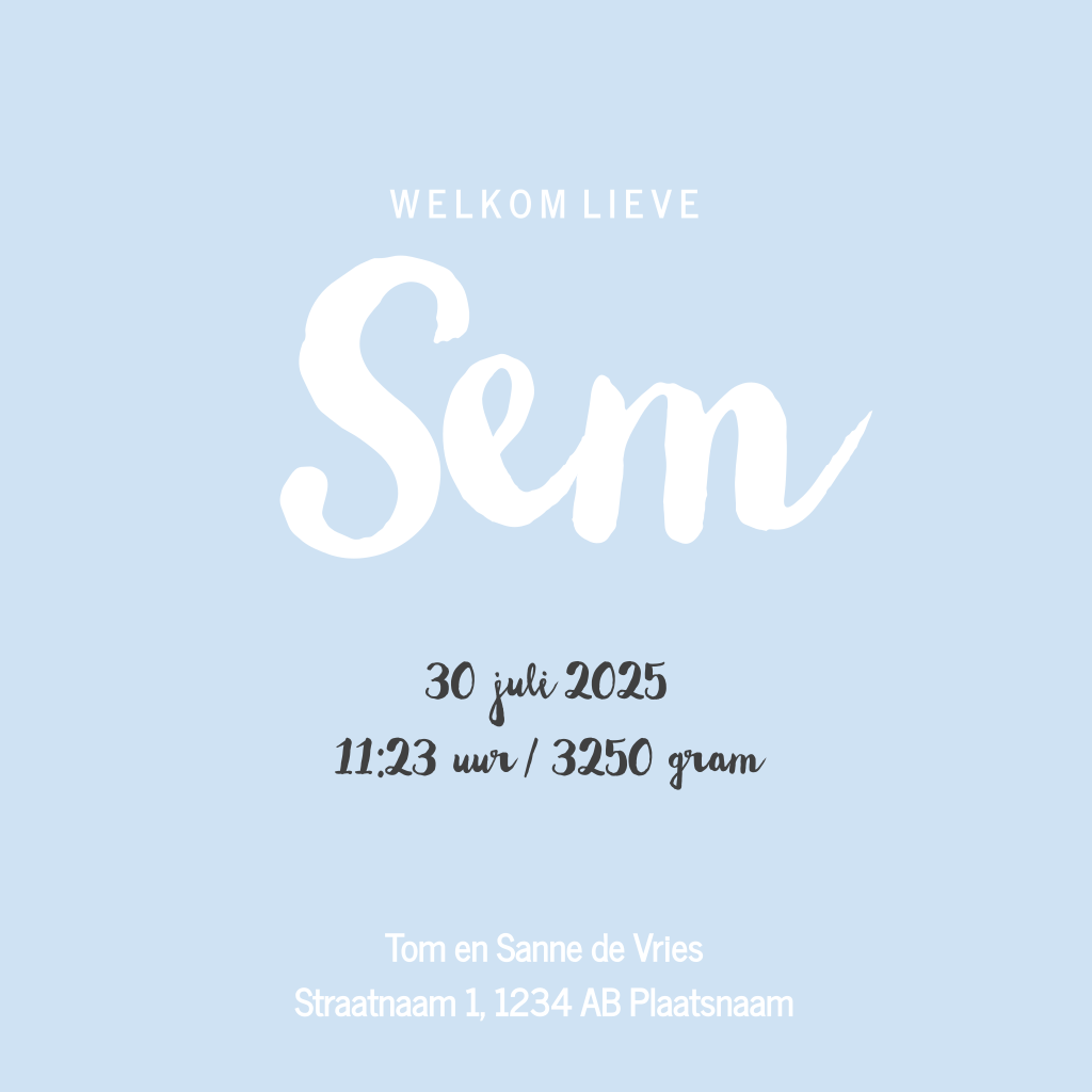 Hip geboortekaartje met blauwe aquarel voor een jongen