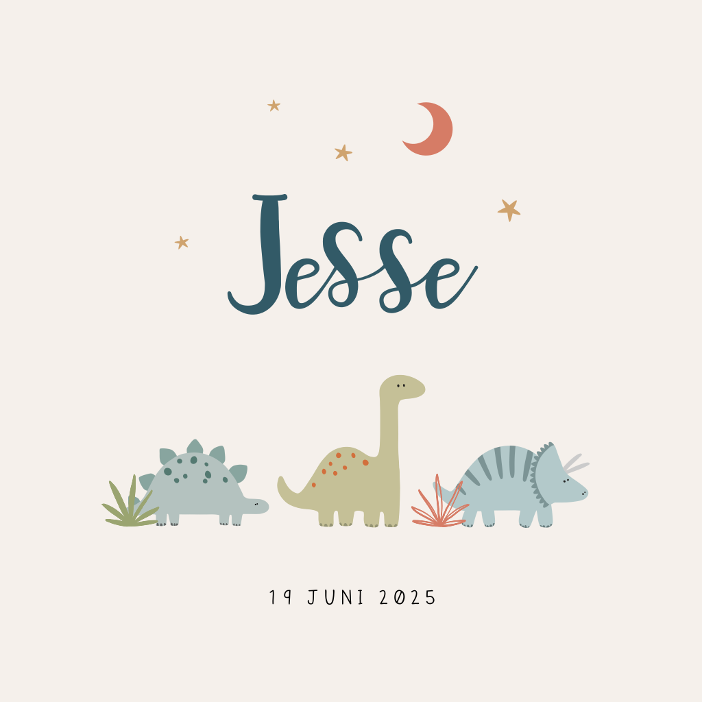Geboortekaartje jongen met vrolijke illustratie dino's