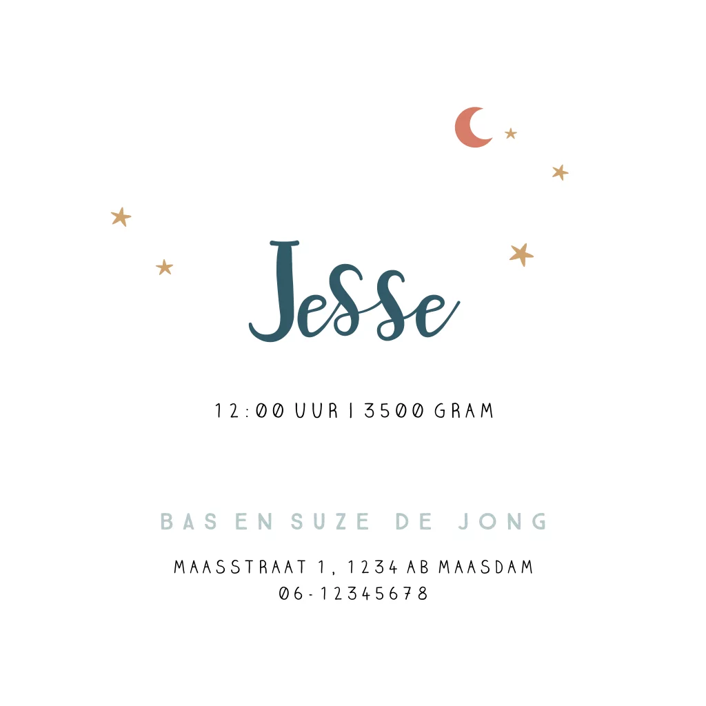 Een vrolijk geboortekaartje voor jullie zoontje. Op dit kaartje zie je een lieve illustratie van drie dino's in groene en blauwe tinten. Pas dit kaartje naar wens aan in onze online editor.
