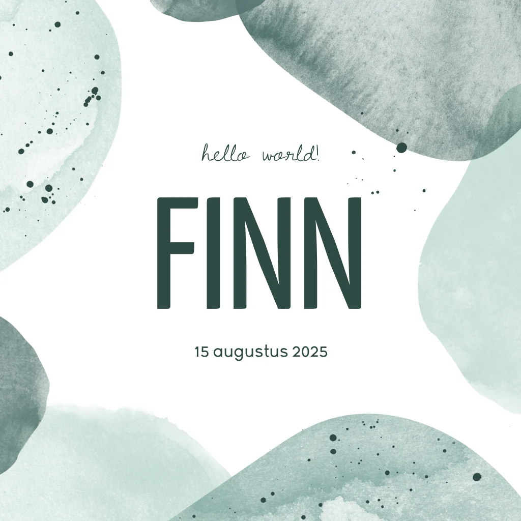 Hip geboortekaartje voor jongen met watercolour vlekken
