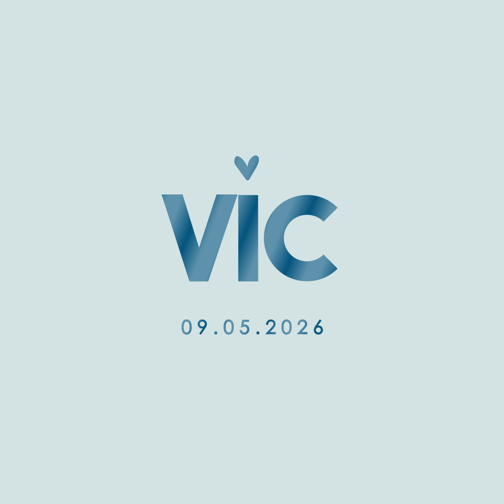 Een trendy en minimalistisch geboortekaartje voor een jongen. Het kaartje heeft een blauwe achtergrond met daarop blauwe hoogglans details. De naam en het hartje worden gedrukt in hoogglans en geeft het kaartje echt een uniek effect.