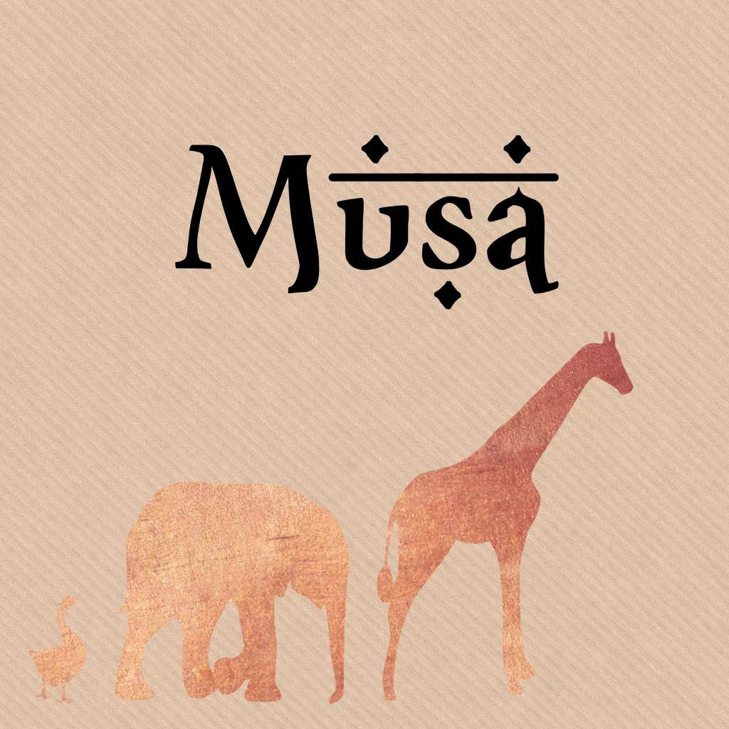 Stoer Islamitisch geboortekaartje jongen met kraft olifant en giraf