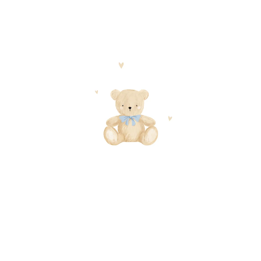Een klassiek geboortekaartje voor jullie toekomstige zoontje. Op het kaartje zie je een schattige illustratie van een teddybeer. De naam van jullie jongen is gedrukt in foliedruk.