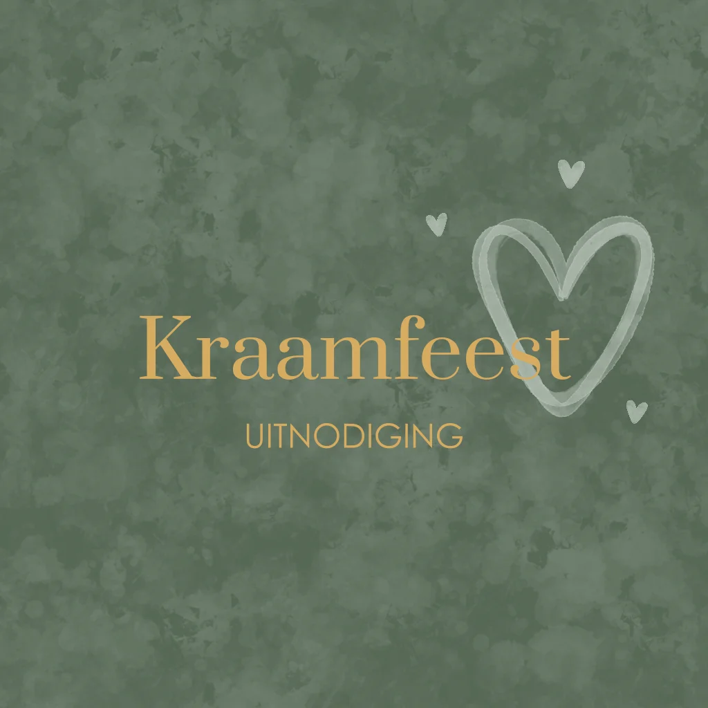 Kraamborrel uitnodiging die helemaal past bij het geboortekaartje. De achtergrond is groen en er staan hartjes op. Pas de uitnodiging naar wens aan in de online editor.