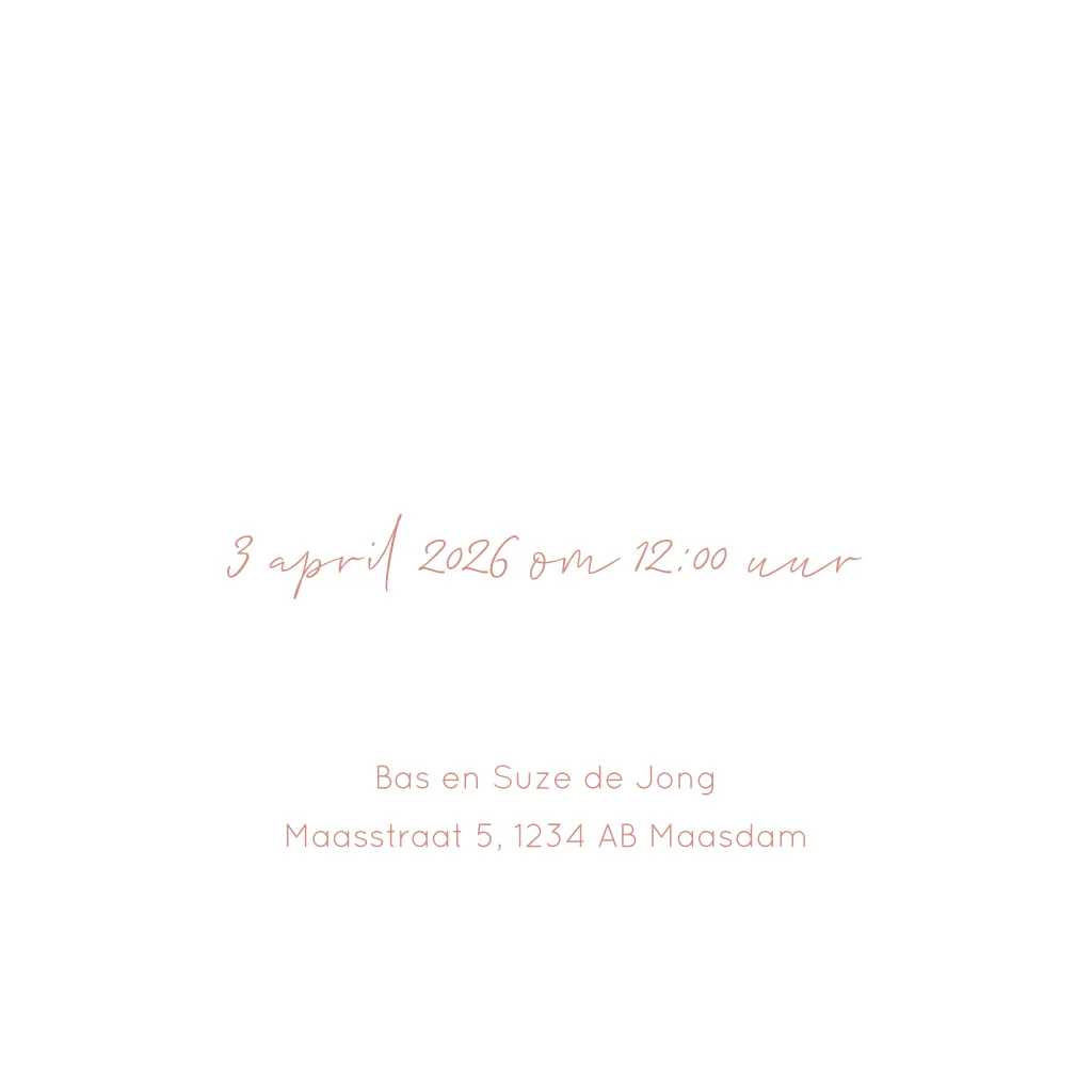 Kondig de geboorte van jullie dochter aan met dit prachtige kaartje. Op het kaartje is de speelse illustratie van een madelief te zien. De naam wordt gedrukt in goudfolie en geeft dit kaartje een luxe uitstraling. Pas het kaartje naar wens aan in onze online editor, bestel een proefdruk en bekijk dit kaartje in het echt!