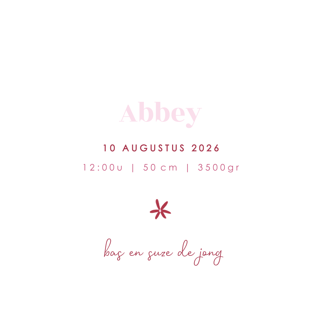 Een schattig geboortekaartje voor een meisje. Het kaartje heeft een lieve roze achtergrond met daarop hooglans bloemetjes. Het kaartje schittert door de hoogglans en heeft ook echt een uniek effect. Pas het kaartje voor jouw dochter tje gemakkelijk aan in onze online editor.