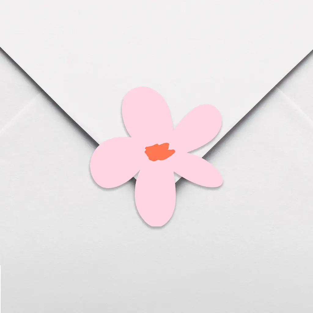 Deze sluitsticker heeft de vorm van een roze bloem.
