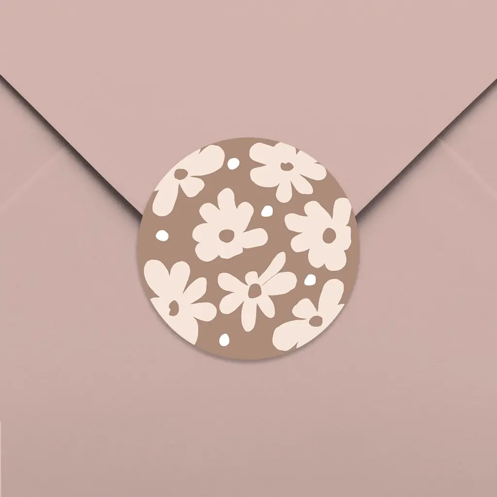 Een stijlvolle sluitsticker met aardetinten en bloemenpatroon. De sticker past bij het geboortekaartje van jouw aanstaande kindje. De sticker is naar wens aan te passen in onze online editor. De sluitstickers hebben een diameter van 35 mm en worden geleverd op vellen van 25 stuks.