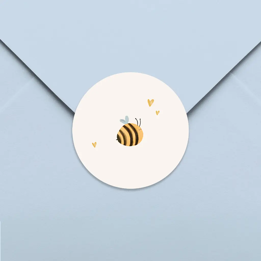 Een vrolijk sluitsticker bijpassend bij het geboortekaartje. De sticker heeft een vrolijke illustratie van een bijtje omringd door hartjes.