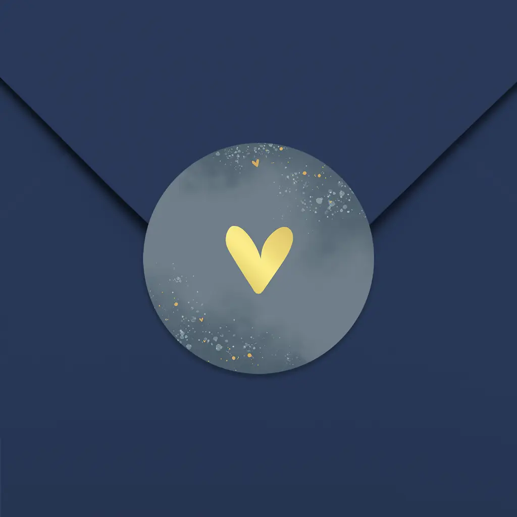 Sluitsticker blauwe watercolour met goudfolie hartje - per vel
