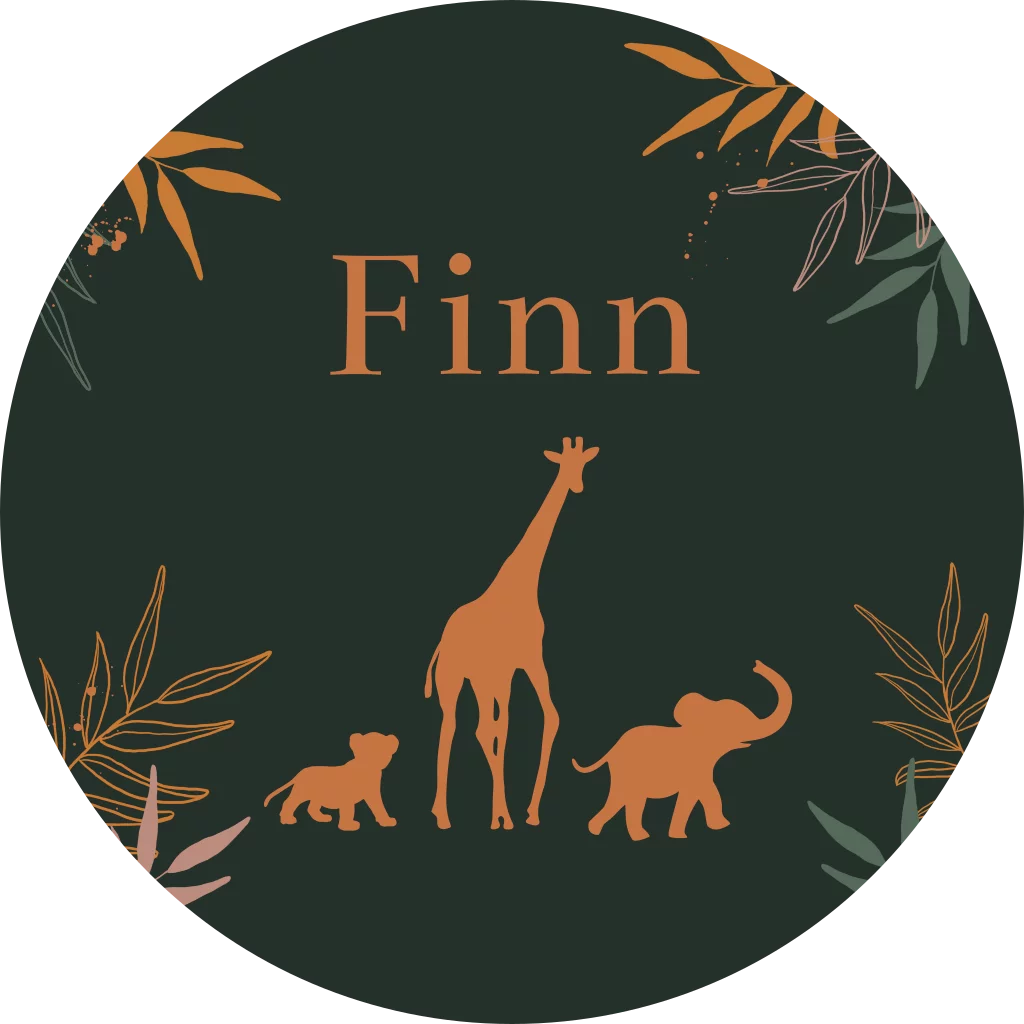 Een avontuurlijke sluitsticker voor het geboortekaartje in jungle thema. De sticker is volledig te personaliseren en past perfect bij het geboortekaartje van designer Made for Moments.