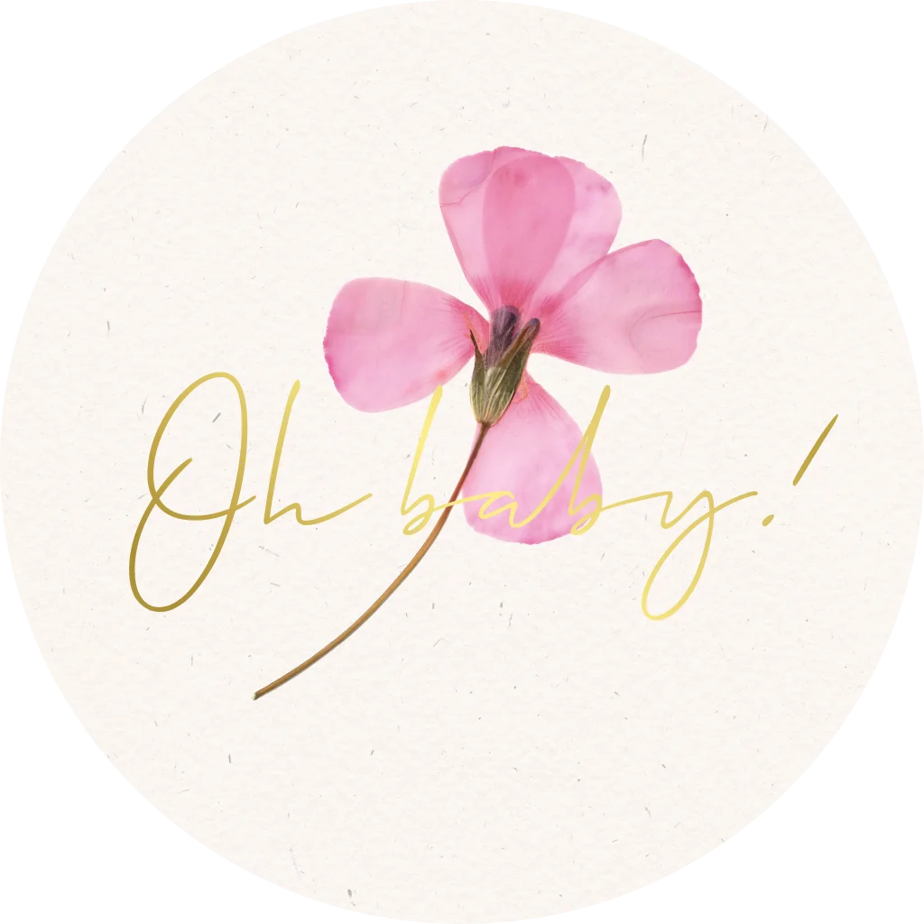 Versier de envelop van jullie geboortekaartje met deze bijpassende sticker. Deze sluitsticker heeft een lichte achtergrond met daarop een mooi gedroogd bloemetje en 'Oh baby' in foliedruk. Bewerk het ontwerp eenvoudig in de editor.