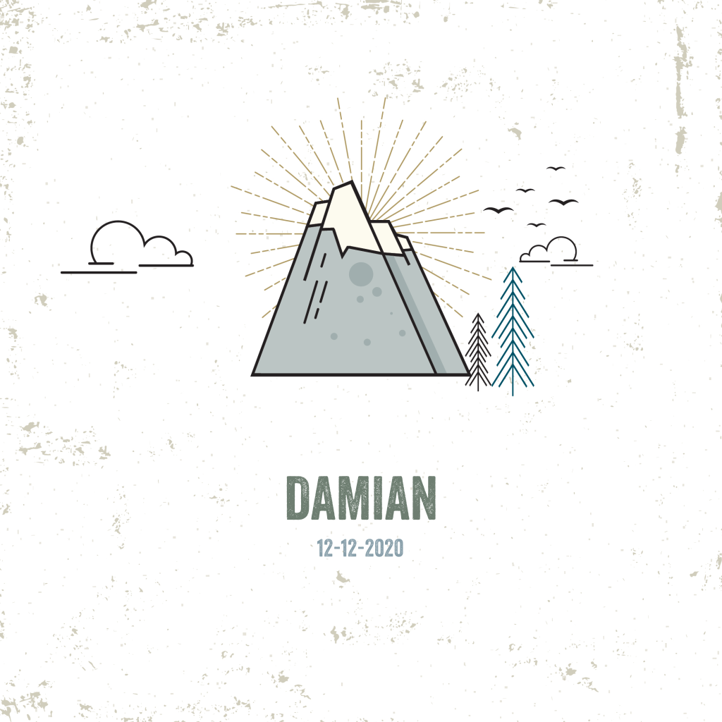 Geboortekaartje voor zoon met besneeuwde bergtoppen