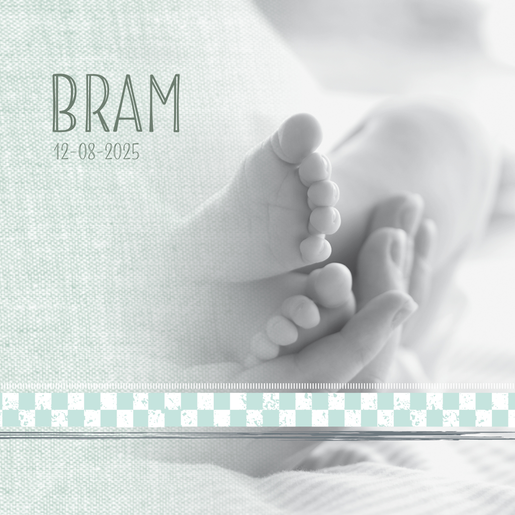 Klassiek geboortekaartje voor jongen met foto baby voetjes