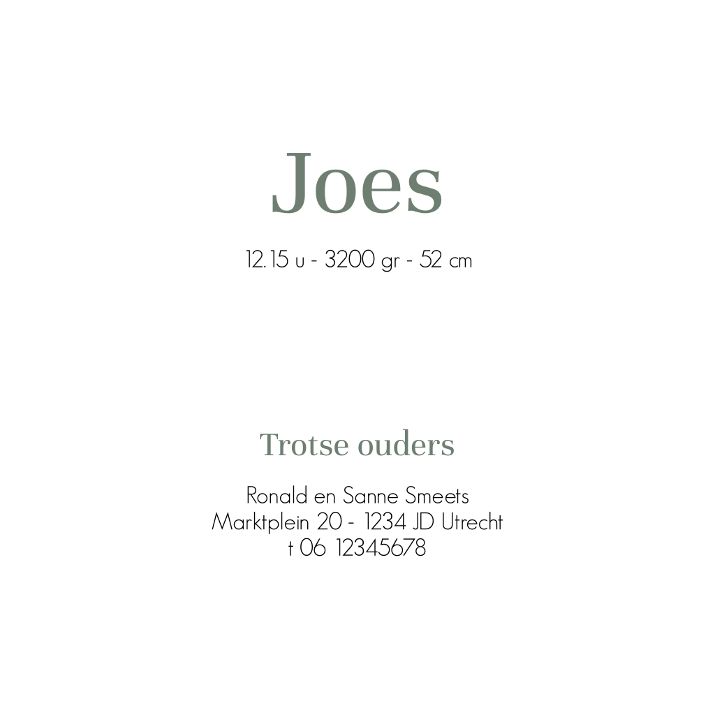 Een stoer geboortekaartje voor een jongen, met een foto van jullie kindje en sterretjes op een groene achtergrond. Dit kaartje kan in de online editor worden bewerkt.