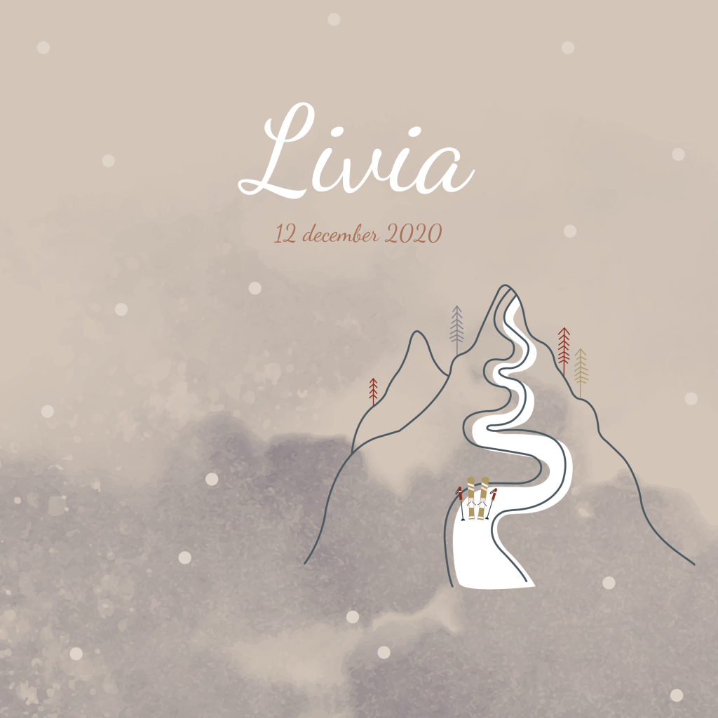 Een winters geboortekaartje voor een dochter met mini skietjes. Een avontuurlijk kaartje is dit.
