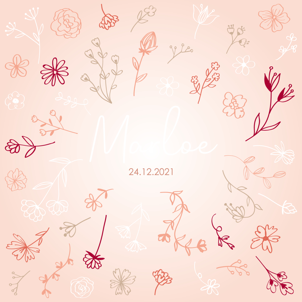 Handgetekende bloemetjes geboortekaartje met roségoudfolie