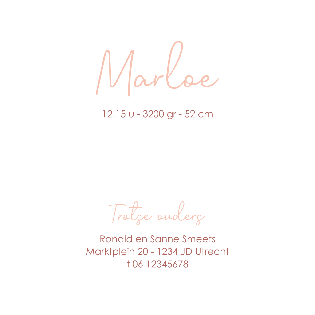 Dit mooie gedetailleerde geboortekaartje is perfect voor jullie dochter. De decoratie met roségoudfolie maakt het kaartje helemaal af.