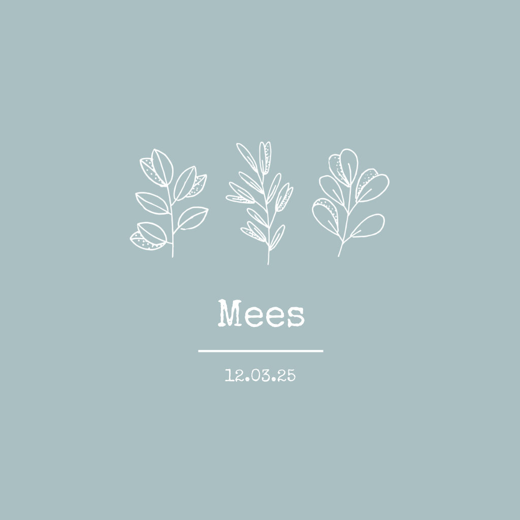 Hippe geboortekaart voor je zoontje met een minimalistisch ontwerp van botanische takjes met bladeren. Schrijf je eigen teksten, verander de lettertypes en kies een mooie achtergrond kleur en maak zo een trendy geboortekaartje!