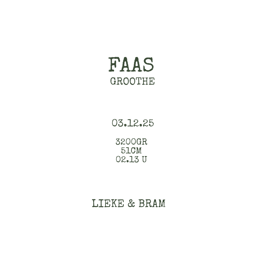 Minimalistisch geboortekaartje voor je zoon met een hippe handgetekende vos die aan het slapen is. De combinatie van de tekening op een donker groene achtergrond maakt dit kaartje echt stoer!