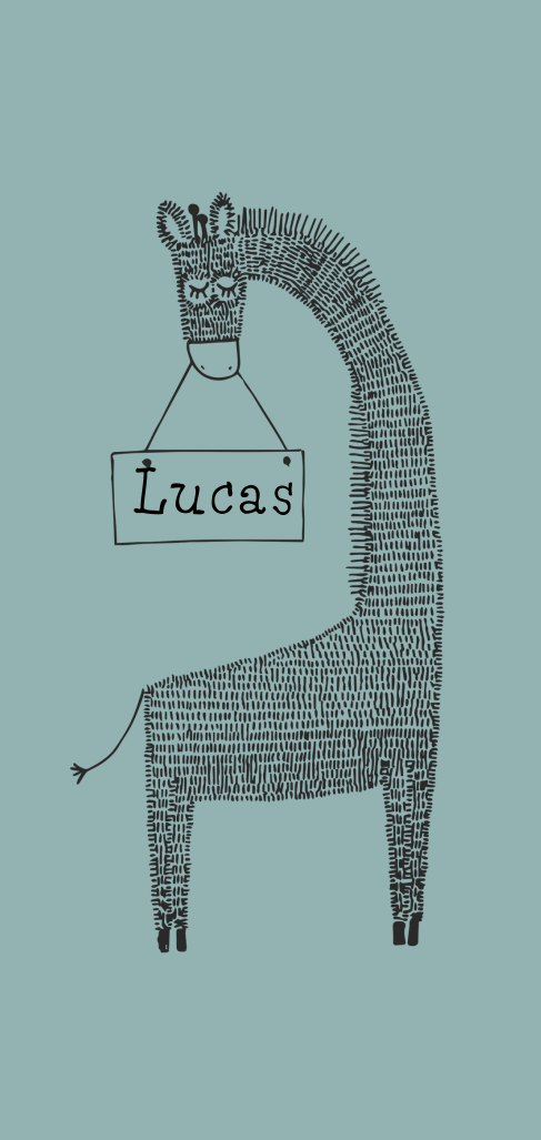 Kondig de geboorte van jullie zoontje aan met dit lieve kaartje. Op een petrol achtergrond staat de tekening van een giraffe. De giraffe houdt een bordje vast waar de naam van jullie kleintje op staat. Het kaartje kan naar wens aangepast worden in onze online editor.