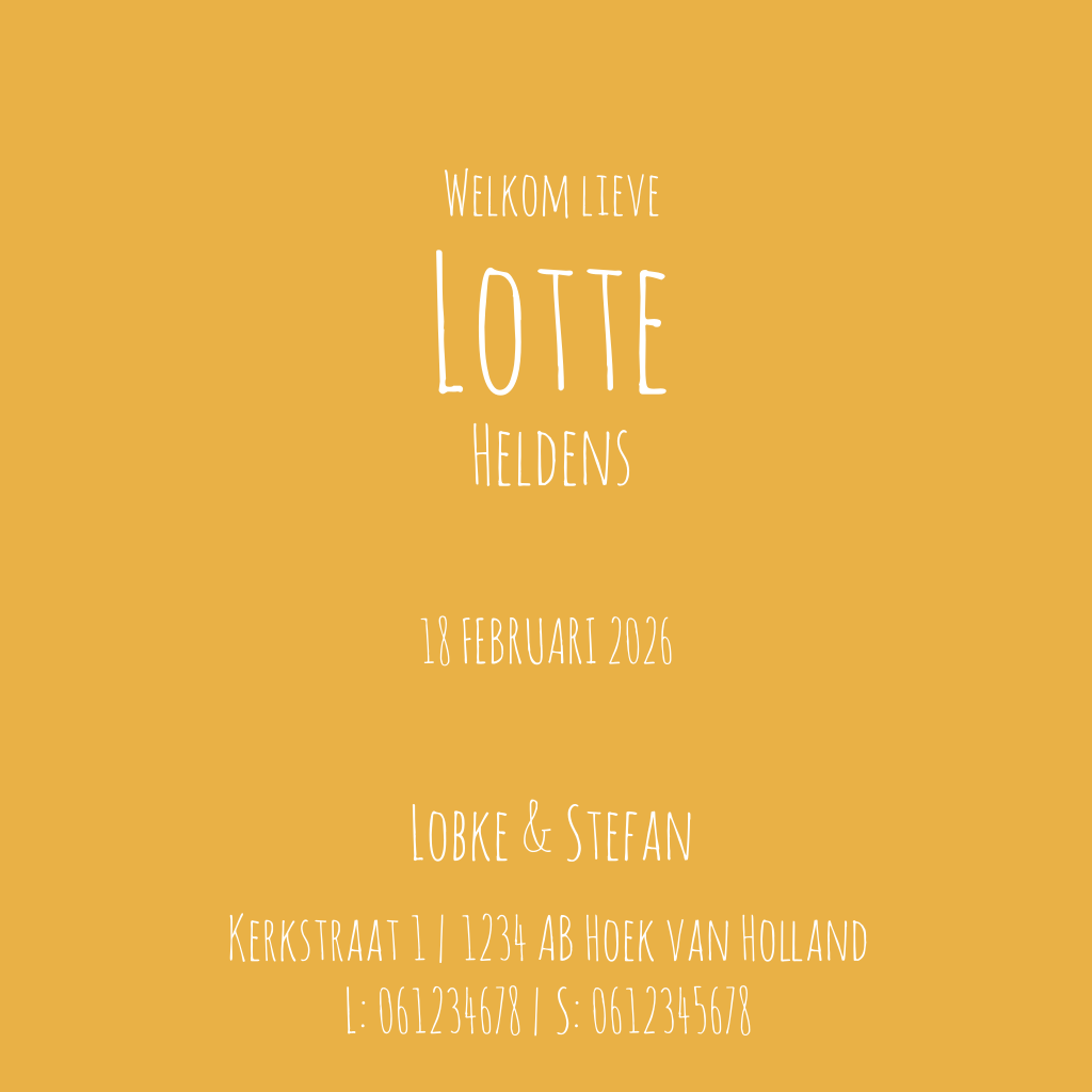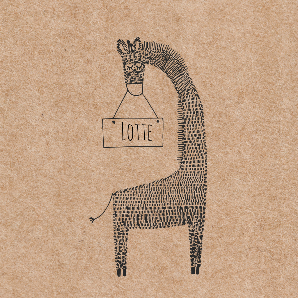 Geboortekaartje meisje met handgetekende giraffe met een stoere kraftpapier-look achtergrond. Liever een andere kleur achtergrond? Ook dat is mogelijk. Verwijder de achtergrondafbeelding en kies je favoriete kleur.