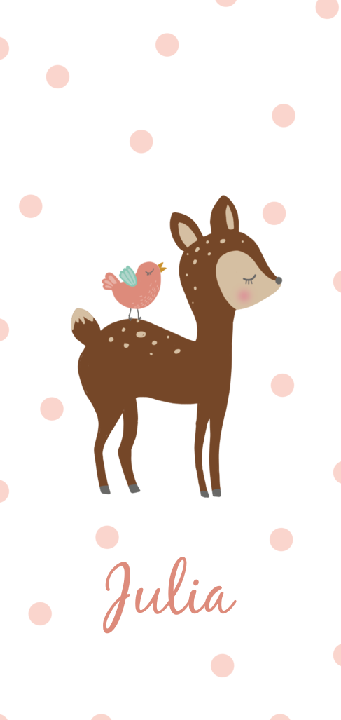 Lief geboortekaartje voor meisje met illustratie vogeltje en hertje