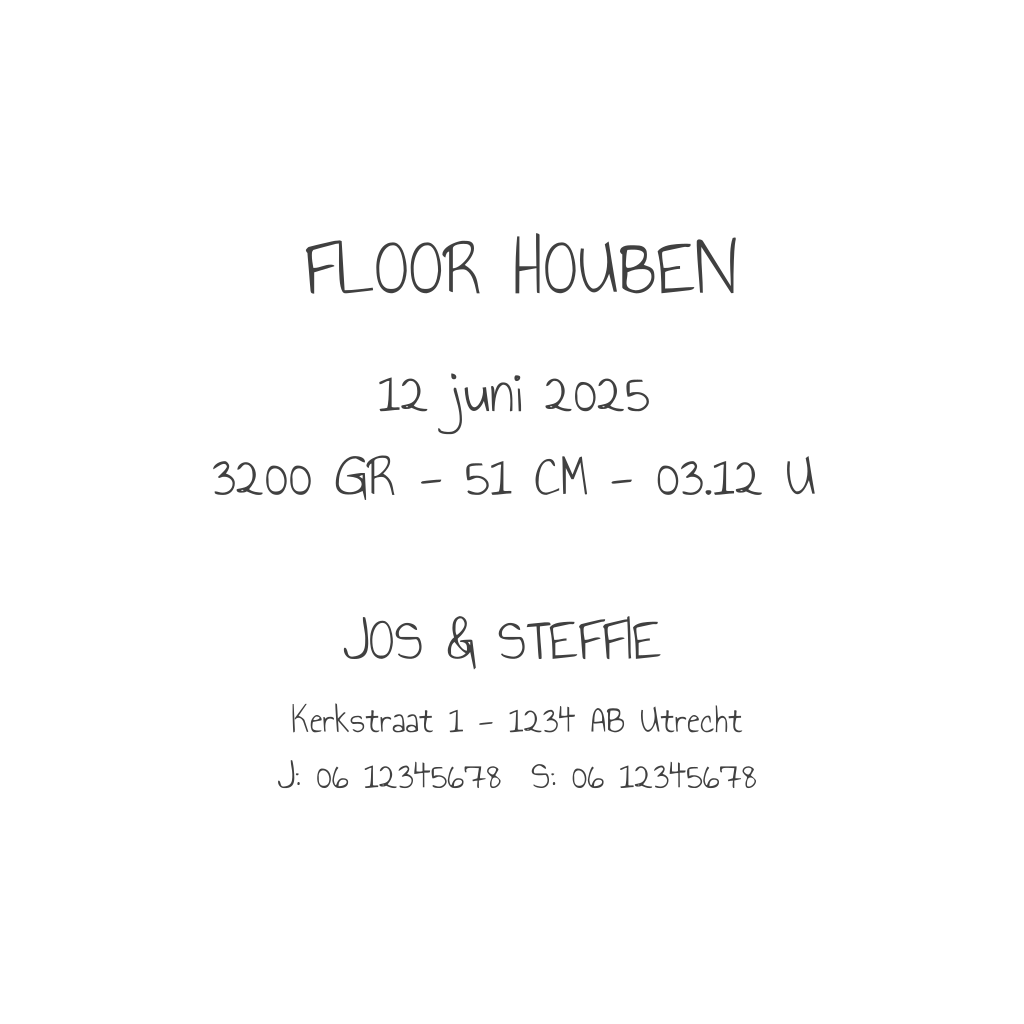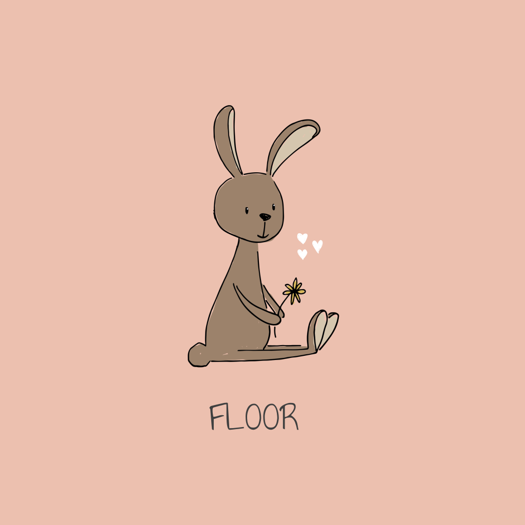 Lief geboortekaartje voor meisje met pentekening van konijn