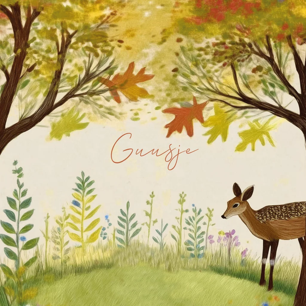 Herfst geboortekaartje met bos en hertje
