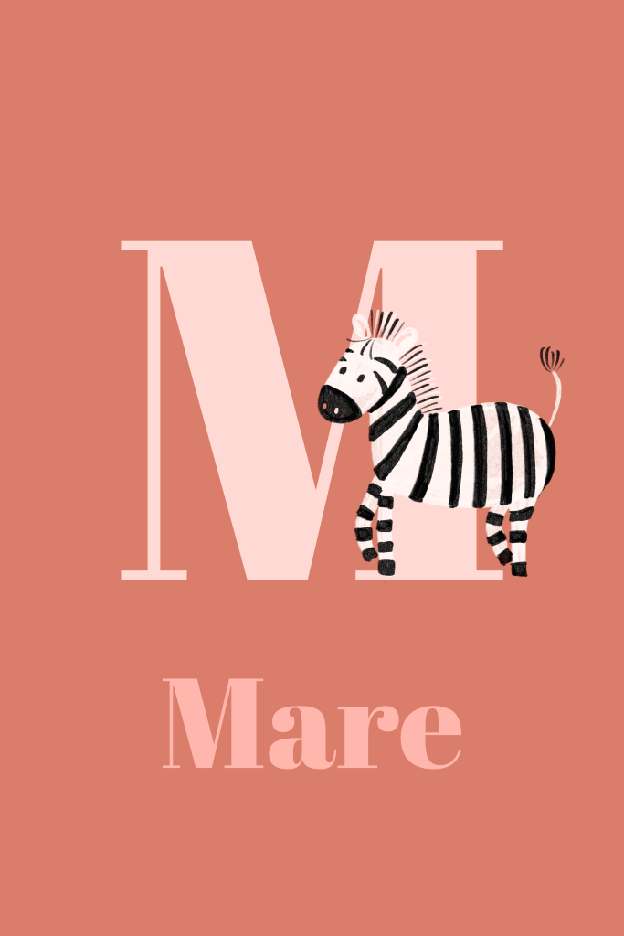 Wat een vrolijk geboortekaartje! Dit staande kaartje heeft een koraal roze achtergrond met daarop groot de initiaal van de naam van jullie kindje. Bij de letter staat een schattige zebra. Pas het kaartje naar wens aan in onze online editor.
