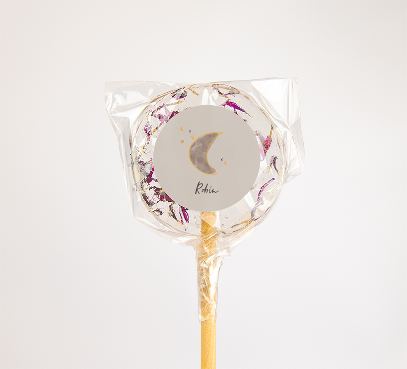 Naamsticker met watercolour maantje en sterren