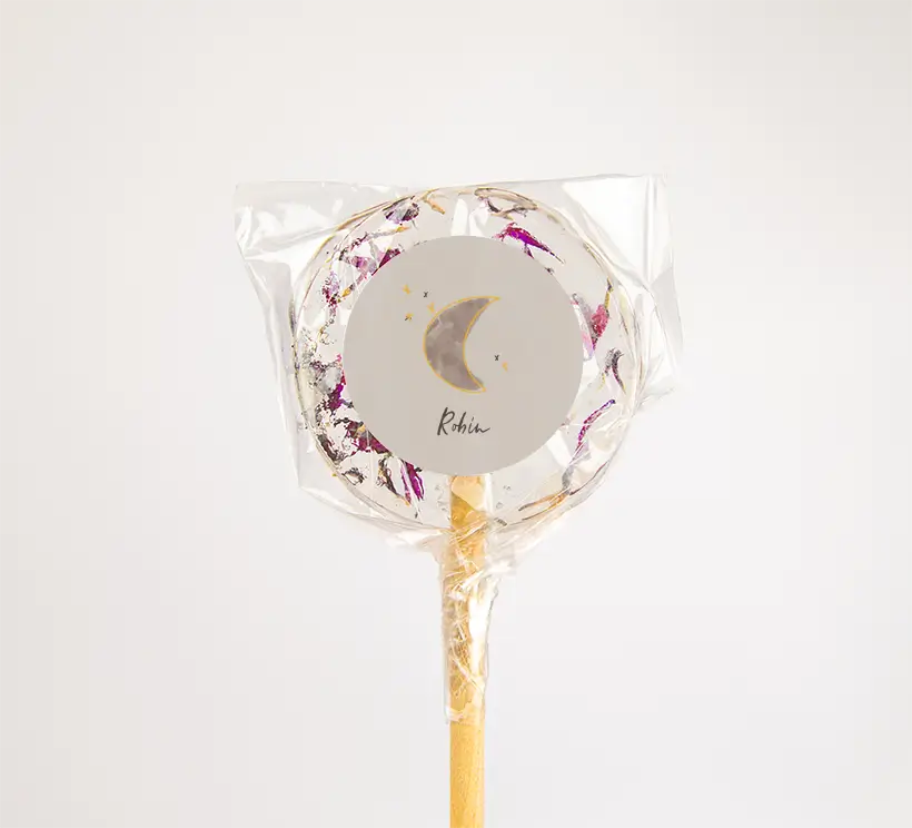 Naamsticker met watercolour maantje en sterren - per 25 stuks