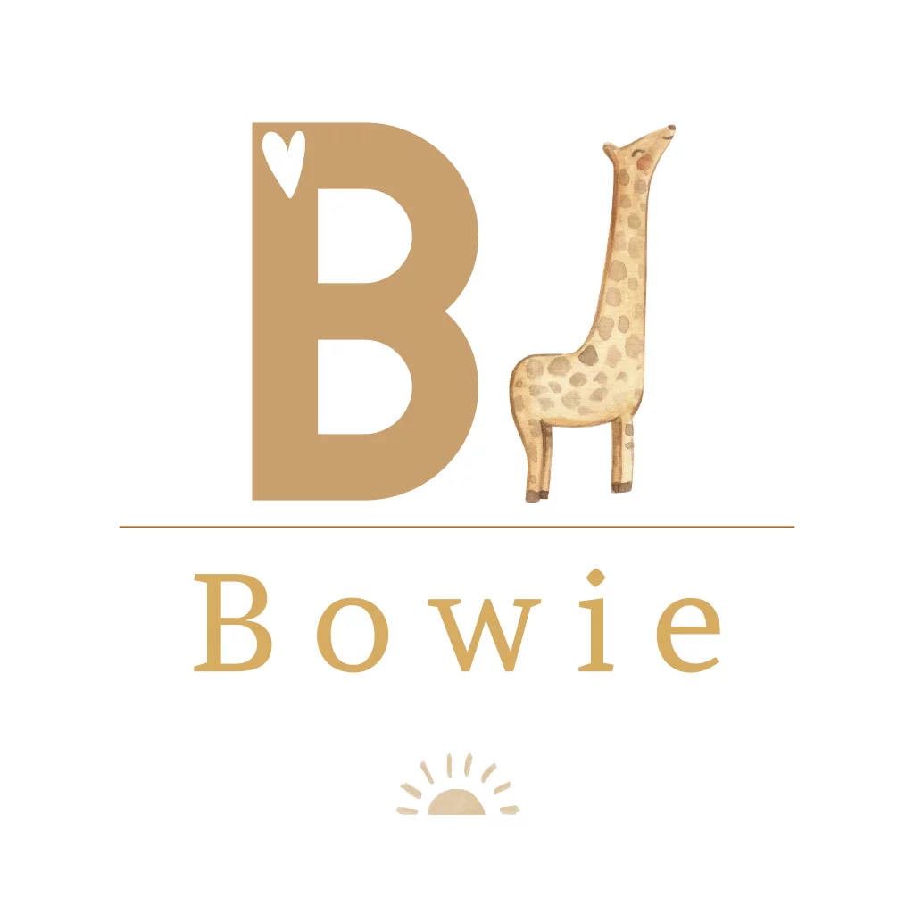 Maak de geboortebedankjes en doopsuikers helemaal compleet met deze speelse naamstickers. De stickers hebben een witte achtergrond met de initiaal en naam van jullie kleintje, de illustratie van een giraffe en een ondergaande zon.