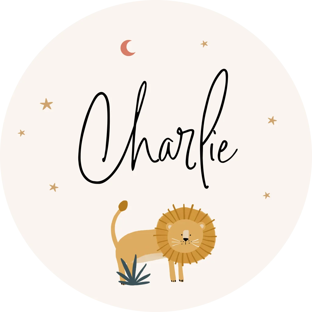 Naamsticker met leeuwtje, maan en sterretjes