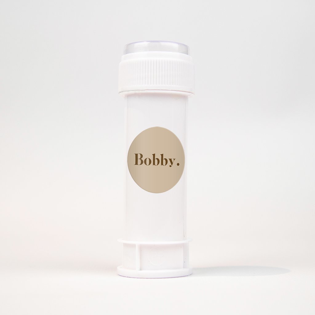 Maak de doopsuiker compleet met onze naamstickers. Deze minimalistische sticker heeft een mokka kleur met bruine letters. Pas het ontwerp naar wens aan in onze online editor.