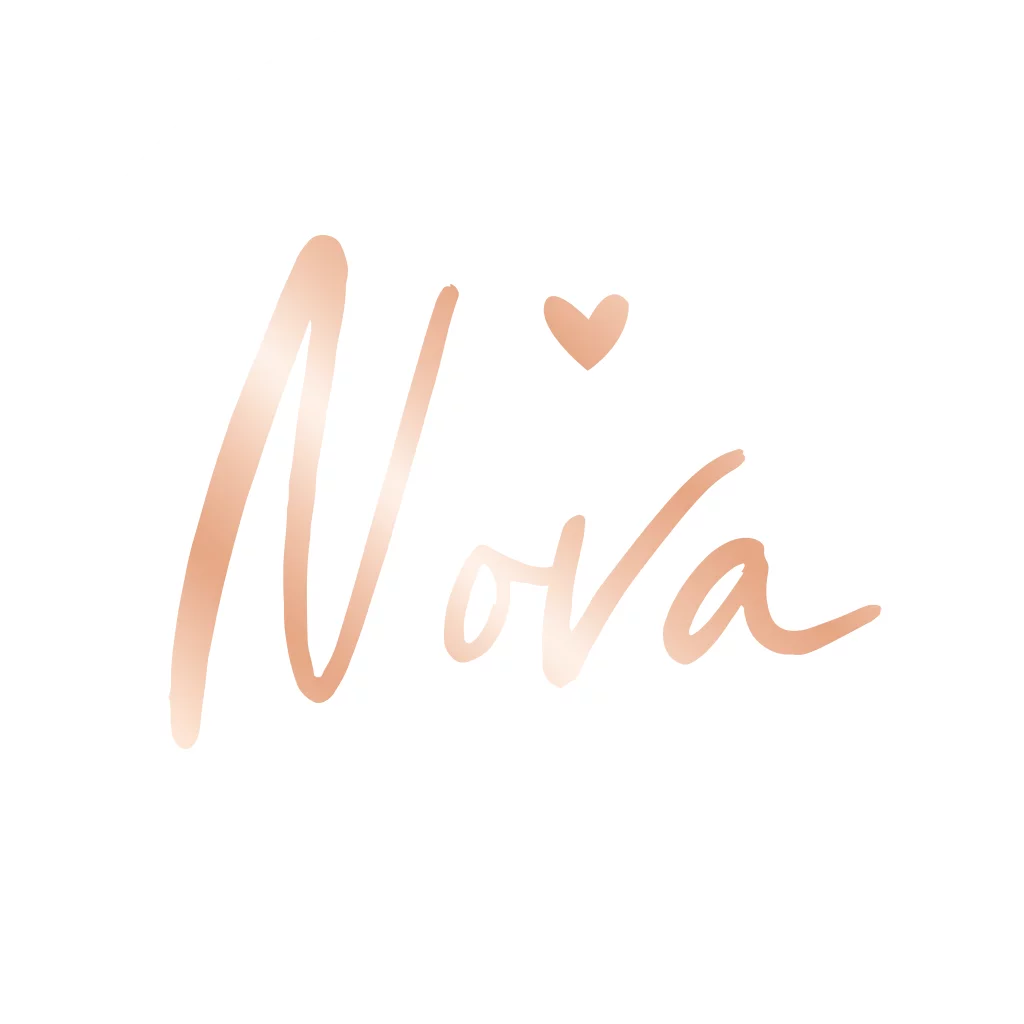Een lieve naamsticker met roségoudfolie letters. Het ontwerp is naar wens aan te passen in de editor.