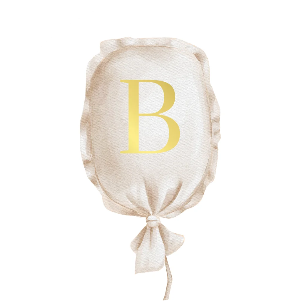 Een leuke naamsticker passend bij het geboortekaartje. De sticker heeft een mooie ballon met initiaal in goudfolie. Pas het ontwerp naar wens zelf aan.
