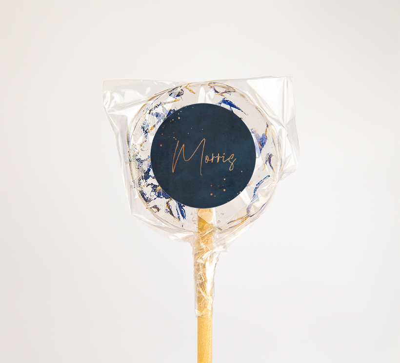 Plak deze naamsticker op je geboortebedankjes om het helemaal af te maken. De naam staat in trendy letters in hoogglans en kun je heel gemakkelijk zelf aanpassen in onze editor.
