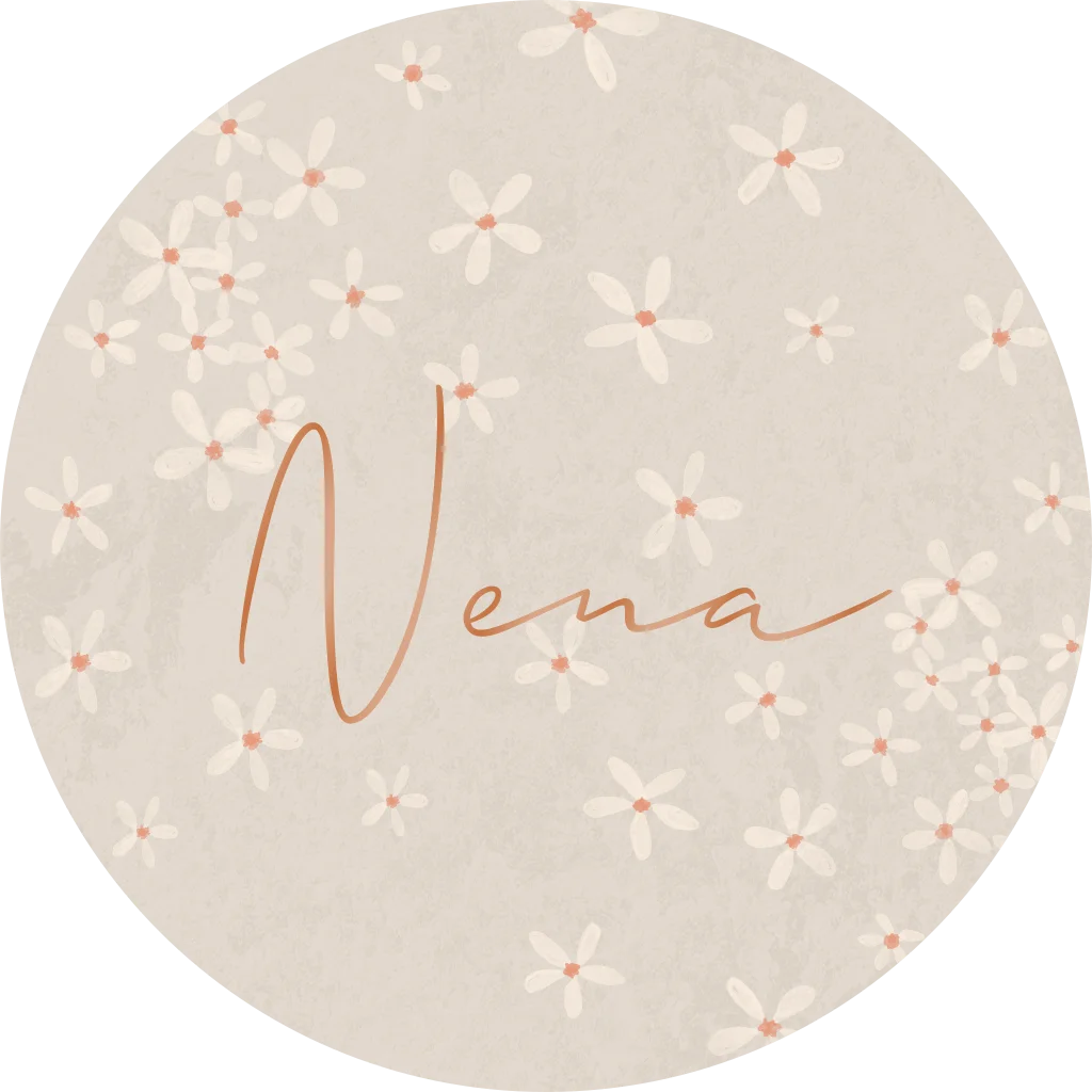 Dit is een originele naamsticker voor op de geboortebedankjes van jullie dochter. De kleine bloemetjes geven de sticker een schattige uitstraling. Pas de sticker naar wens aan in onze online editor.