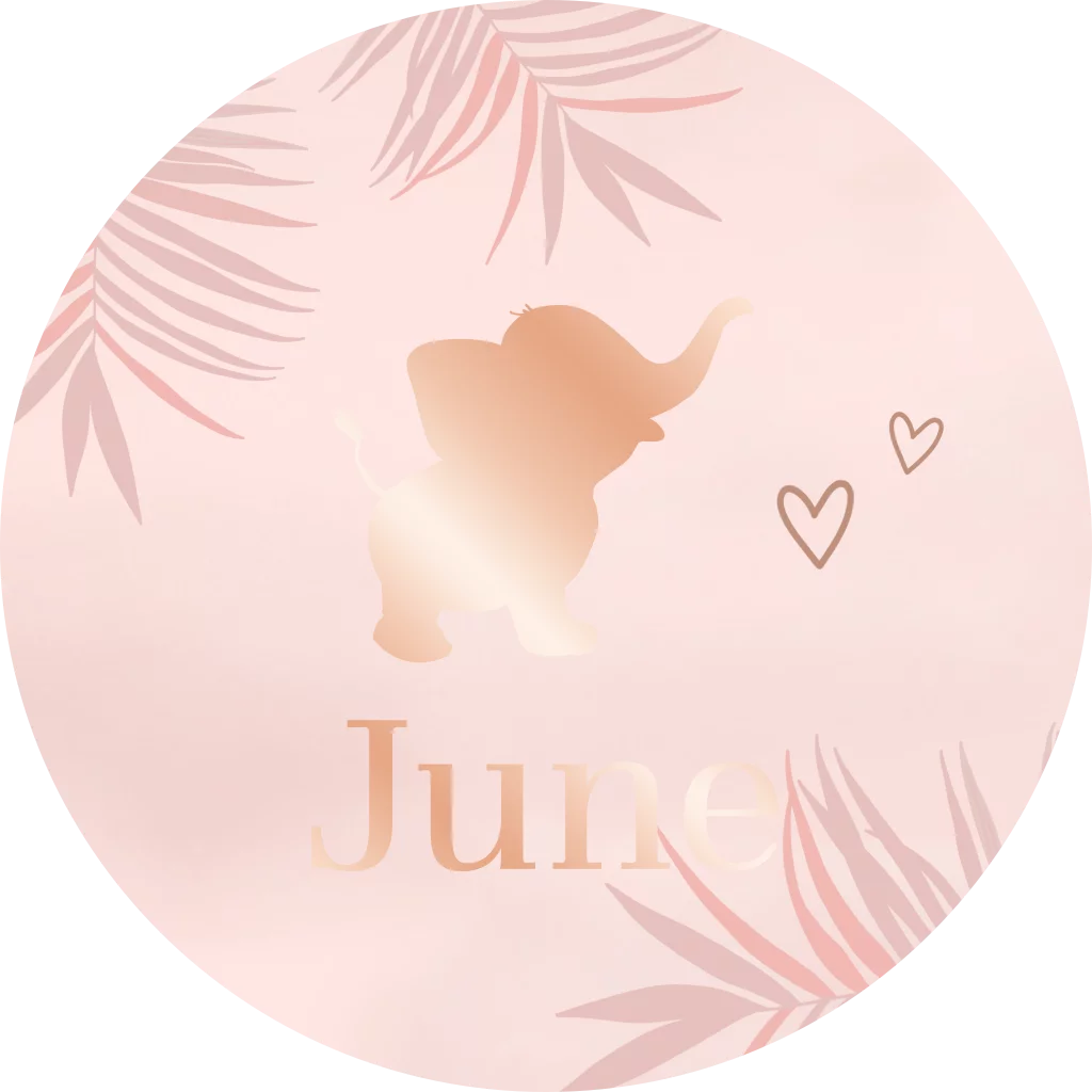 Deze naamstickers zijn perfect voor het inpakken van de geboortebedankjes en doopsuikers. De naamstickers hebben een lichtroze achtergrond. De naam, het olifantje en de hartjes worden gedrukt in roségoudfolie. De bladeren maken deze stickers helemaal compleet.