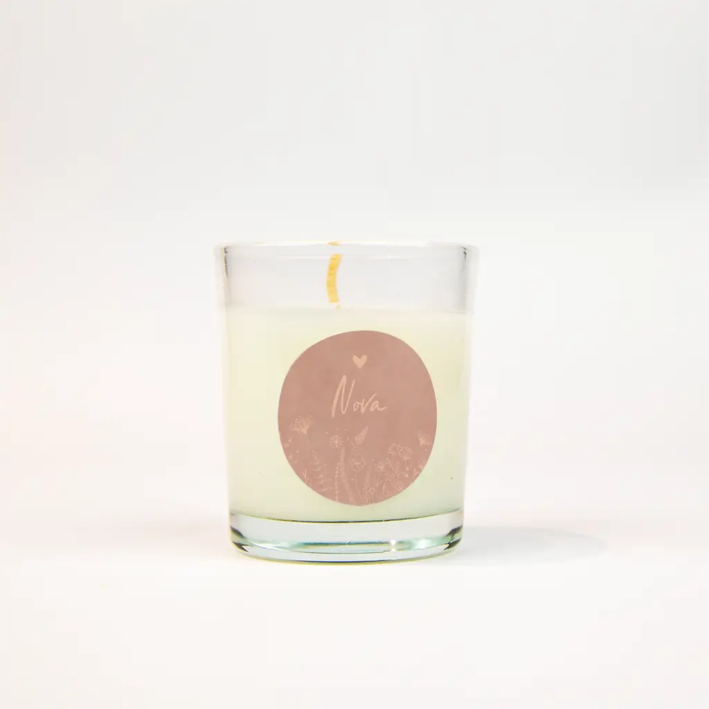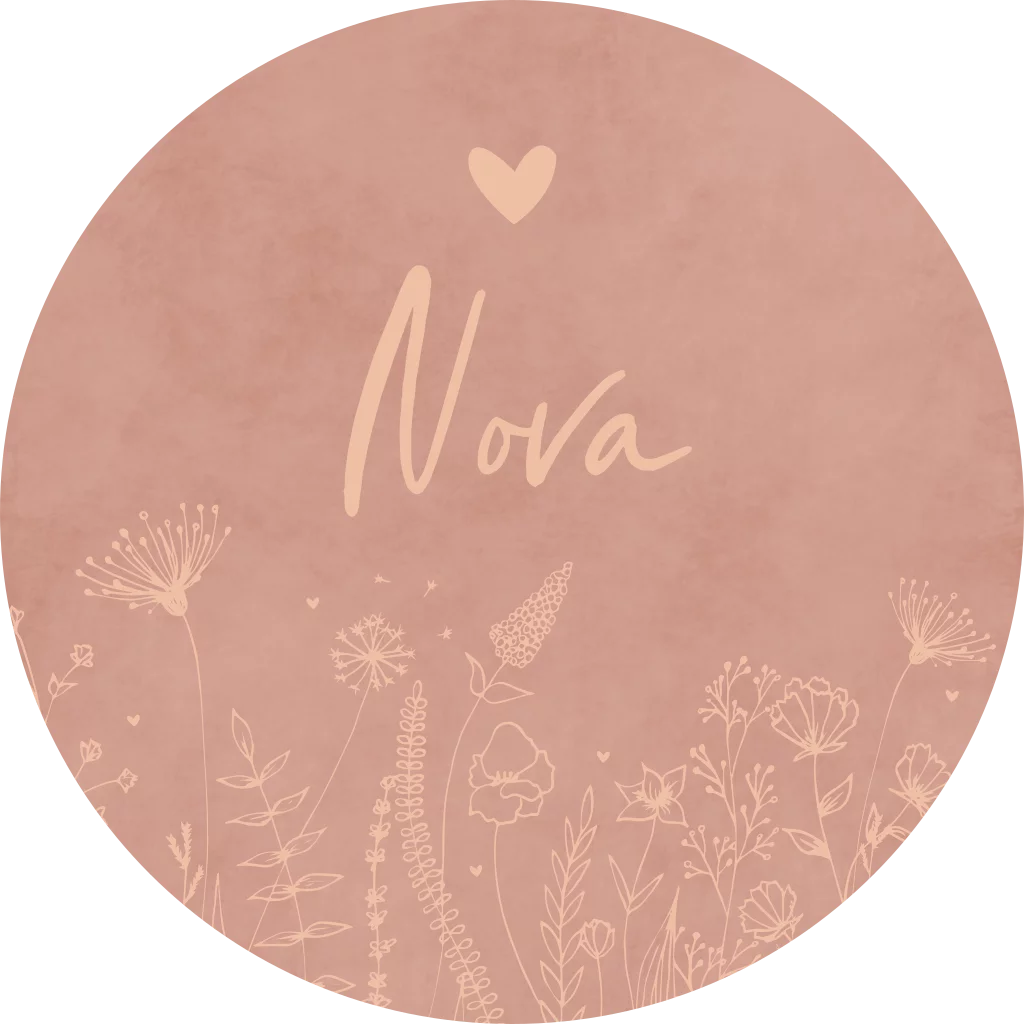 Maak de geboortebedankjes en doopsuikers extra persoonlijk met deze naamstickers. De stickers hebben een roze velvet-look achtergrond met de naam van jullie kleintje, hartje en bloemen.