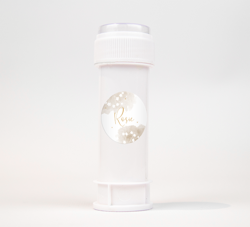 Maak je geboortebedankjes helemaal af met deze stijlvolle naamsticker. De sticker heeft een mooie bruine watercolour met daarop witte bloesemtakjes. Pas de naam naar wens aan in onze online editor.